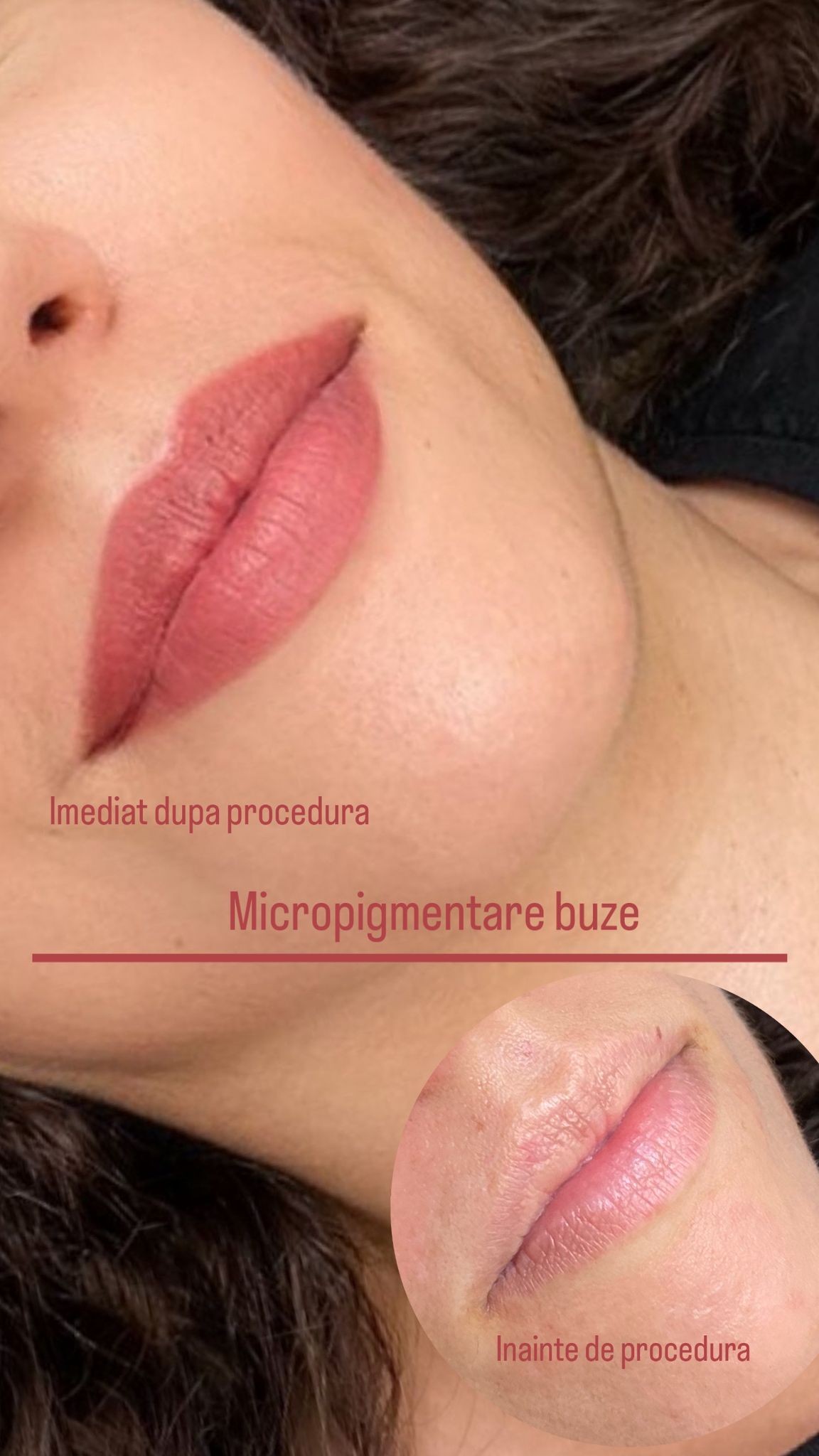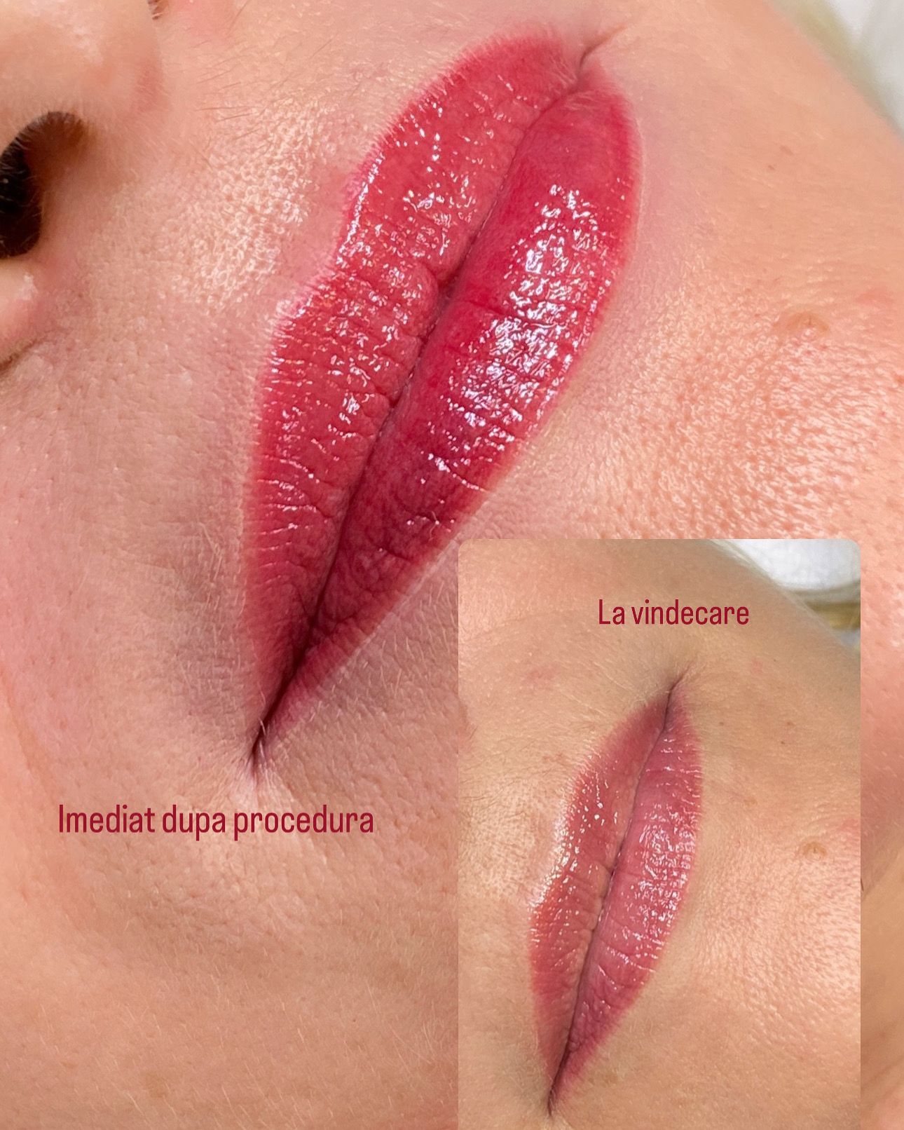 Imediat după procedură, buzele vor părea mai intens colorate și ușor tumefiate, dar acest efect se diminuează în câteva ore. Procesul complet de vindecare durează între 5 și 10 zile, timp în care culoarea se va deschide treptat, ajungând la nuanța finală, naturală. Vei primi instrucțiuni detaliate de îngrijire post-tratament pentru o vindecare optimă.